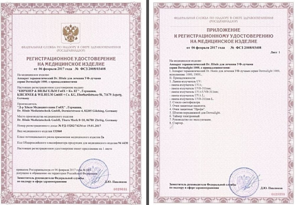 UVB-терапия в Дженерал Медикал Центр – это германский высокотехнологичный профессиональный комплекс оборудования Дермалайт, который включает в себя:
