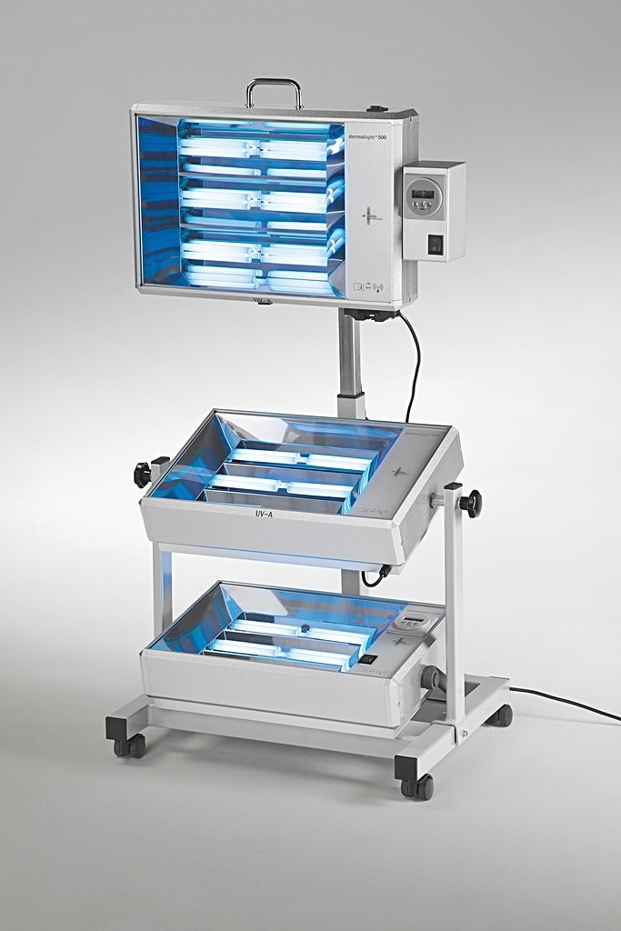 UVB-терапия в Дженерал Медикал Центр – это германский высокотехнологичный профессиональный комплекс оборудования Дермалайт, который включает в себя: