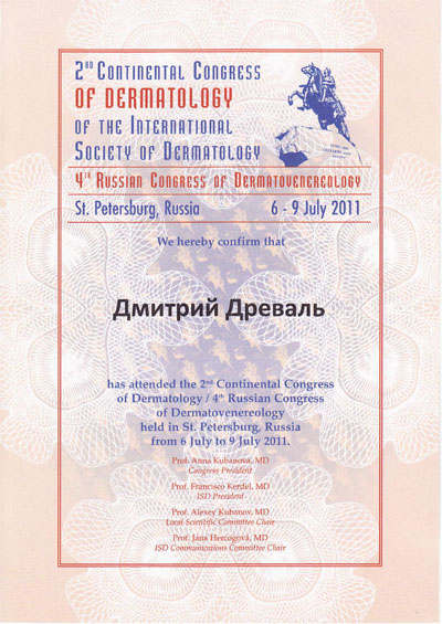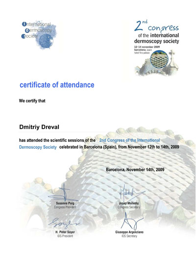 2006 г. – международные курсы по дерматоскопии в Варшаве (Польша)