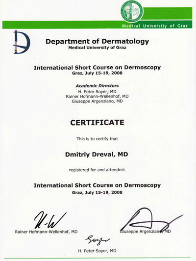 2008 г. - международные курсы по дерматоскопии в Граце (Австрия)