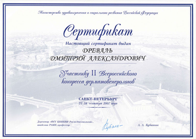 1994 – 1997 гг. интернатура и клиническая ординатура на кафедре дерматовенерологии СПбГПМА